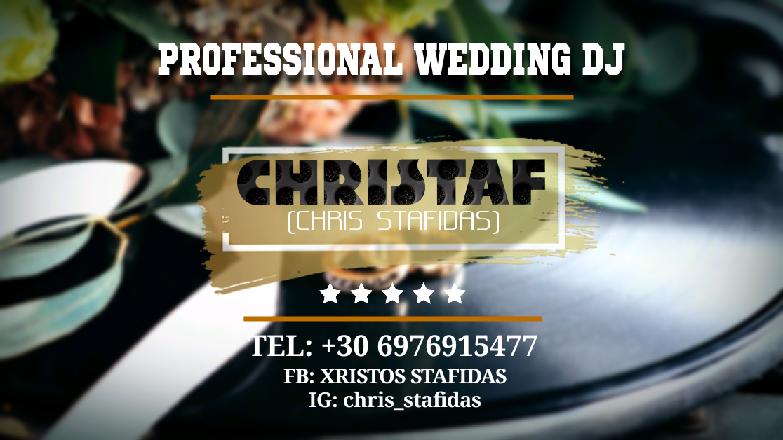 Επαγγελματική εμπειρίαΣε ευχαριστώ που πέρασες από το προφίλ μου! Είμαι ο Χρήστος, κατά κόσμον CHRISTAF... Είμαι μουσικός παραγωγός σε συνεργασία με την Panik Records και την Heaven Music, και Dj πανευρωπαϊκά για events σε bars - clubs - private parties, γάμους και εκδηλώσεις παντός τύπου...! Μπορείς να ακούσεις τις δουλειές μου στο Youtube, γράφοντας απλά το nickname μου! (Christaf)